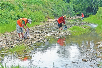 连日来,磨子土家族乡组织政府机关干部职工、村(社区)干部、公益岗位人员,清理河道的垃圾和杂草枯枝。他们还劝导村民不要违规搭建养殖棚等。目前,该乡累计清理河道4公里、清理垃圾8吨。
