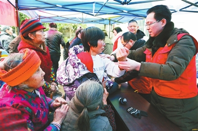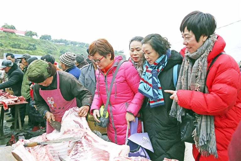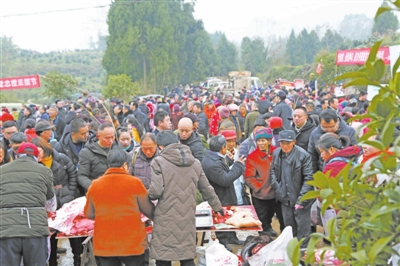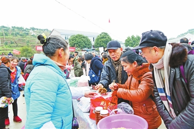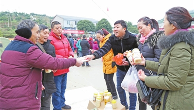 2018年12月30日,天空飘着小雪,1100余名网友来到傅坝村,参加在这里举行的“学习杨骅先进事迹,接力脱贫攻坚战”——“网友e家亲”采购山货消费扶贫活动,3个小时就实现交易额21万余元。 记者 赵军 摄
