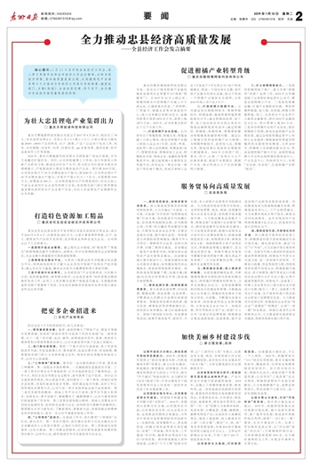 四、狠抓招商引资,不断强化对外开放。深入推进开放型经济改革工作,积极推进内陆开放高地建设行动计划实施。强化招商引资,通过“内引”与“外培”,大力实施开放主体培育行动。全面实行准入前国民待遇加负面清单管理制度,积极加大外资企业引进力度,进一步加强外资利用。不断加大政策、资金等扶持力度,持续培育和发展外向型企业,积极鼓励天地药业、君子林服饰、瑞竹等有出口实绩的在忠注册企业扩大出口量;引导中超盛智能科技、南泰电子、迈威重工、彤典工艺品等有出口潜力的企业实现出口实绩;吸引三一重工、迈威重工等有生产设备、生产原材料进口需求的企业把进口实绩落在忠县。大力推进对外经贸合作,积极组织企业参加“西洽会”“进博会”“智博会” 以及“一带一路”知名展会。积极引进货代公司和船务公司,大力推进新生港保税仓库建设,持续争取新生港口岸开放。