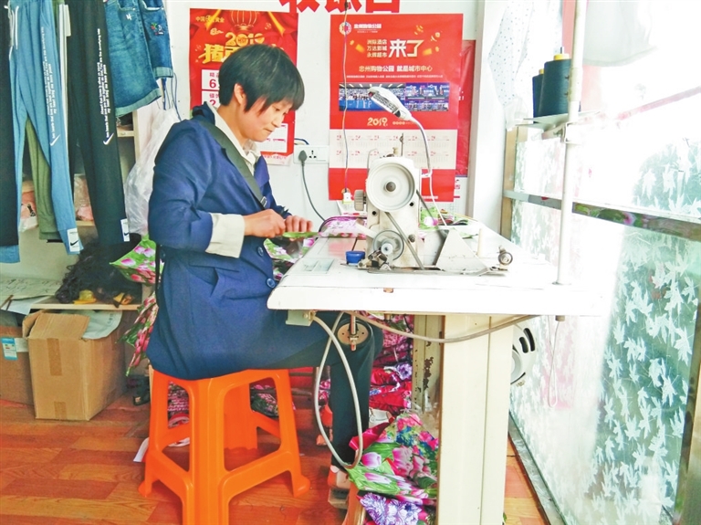 谢远琼在官坝场上开了一家店,机器就放在店里。没客人时,她就制作伞,有顾客时就张罗生意。一个月能增加1000多元的收入。