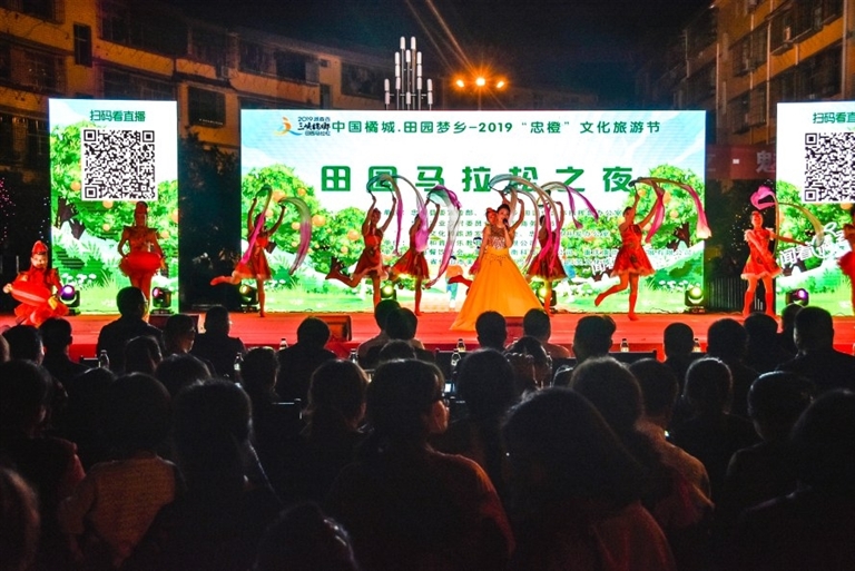 4月21日晚,2019“忠橙”文化旅游节“田园马拉松之夜”音乐晚会在新立镇激情上演。