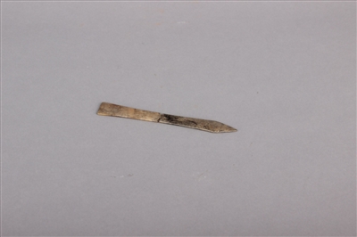 骨圭是一种贵族祭祀用的礼器,用动物骨头制成,其下端平直、上端呈三角形,整体为扁平长条形。忠州博物馆所藏此件商代骨圭,长15厘米、宽1.5厘米、厚0.25厘米,重11克,1998年出土于中坝遗址第103号探方第36文化层。
