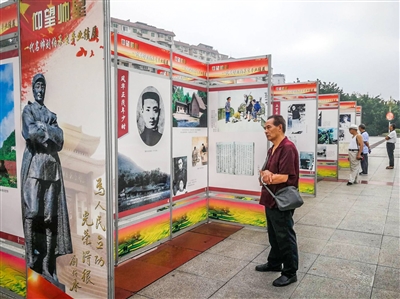 9月5日,县城忠州广场,市民在观看“仰望帅星”——一代名帅刘伯承生平业绩展。