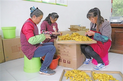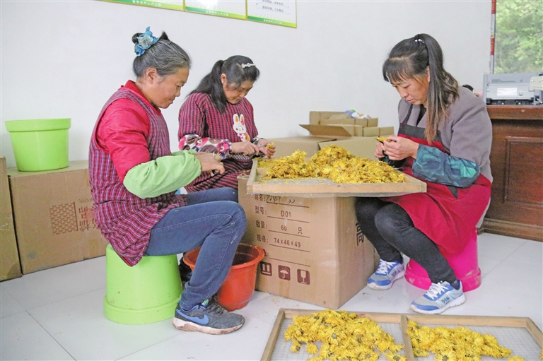 近日,三汇镇金龙社区的忠县汇金龙中药材股份合作社,村民们忙着分拣菊花。