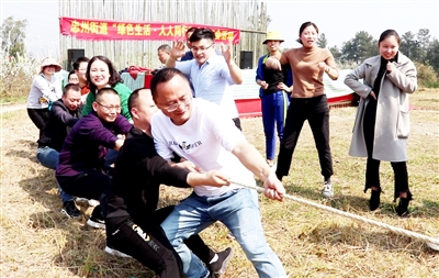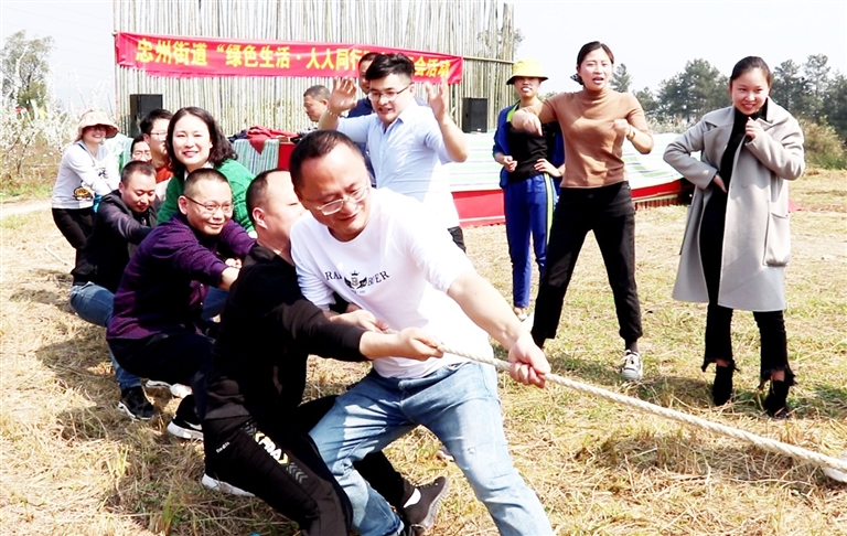 3月23日,忠州街道干部职工在开展拔河比赛。