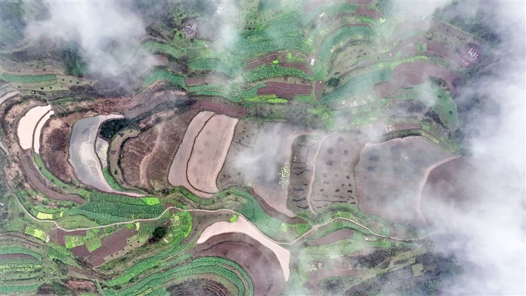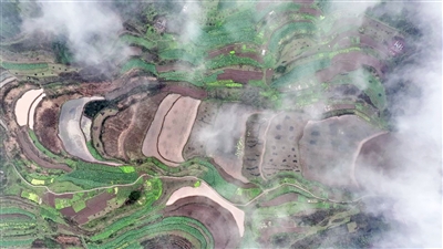 一场春雨过后,在忠县黄金镇金银村,数百亩梯田连成一片,层层叠叠,阡陌纵横,美不胜收。随着气温回升,油菜花次第绽放,村民来到田间劳作,俨然一幅“人勤春早”的多彩田园画卷。