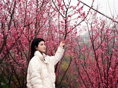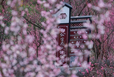 近日,记者在白公生态文化公园内看到,红灿灿的梅花开得绚烂,吸引了不少市民赏花。