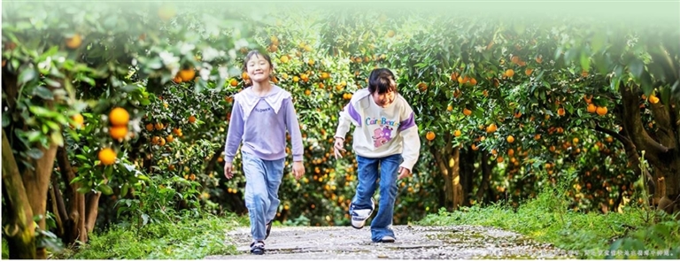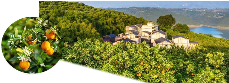 三峡橘海位于涂井乡友谊村境内,坐落在长江之滨,拥有柑橘面积近6000亩,是忠县的标准化柑橘园区之一。每年四月,这里绿叶簇拥黄果、黄果点缀白花、白花散发芳香,呈现出花果同树的独特奇观,成为忠县乡村旅游的一张名片。