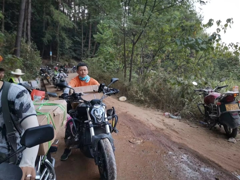 当天,周攀收拾好装备,头顶骄阳,冒着40℃的高温,长途奔驰6个小时,于深夜到达巴南区界石镇。到了界石镇来不及休息,他就立即和参与现场救援的重庆市某摩托车俱乐部人员汇合。按照统一安排,他们于8月24日一早投入到物资和人员运送、砍伐隔离带工作中。