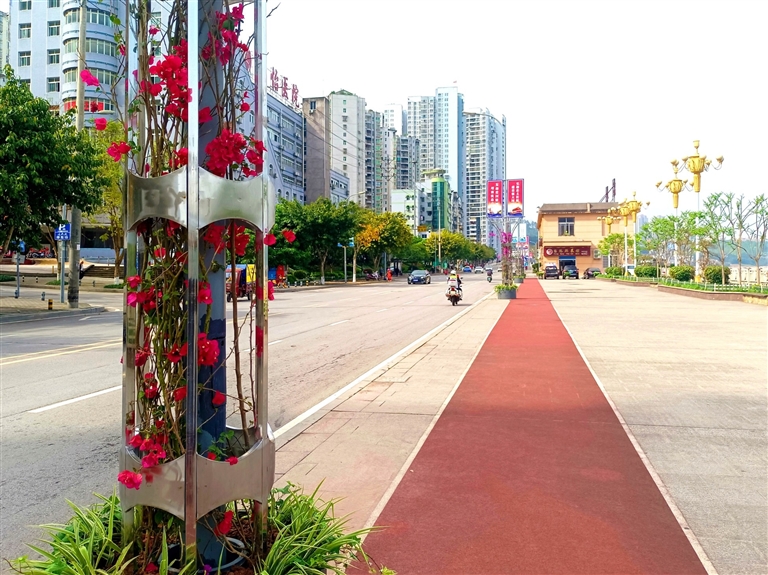 “此次选用的花种色泽亮丽、美观大气。夜幕降临后,在灯光的映衬下,城市街景更加妩媚动人。”县市政园林服务中心相关负责人介绍,今年,忠县在城区采取安装伞状灯杆花架、街头隔离墩花篮,设置人行护栏花箱等方式,最大限度增加城市绿量,延伸城市景观链,拓展城市生态空间,提升城市宜居品质。