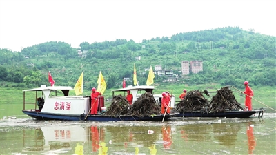 7月3日以来,忠县累计出动人工打捞船80余艘次,累计打捞垃圾400余吨。