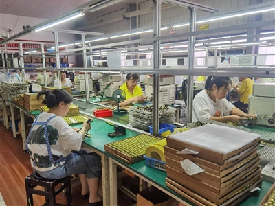 7月18日,位于忠县工业园区水坪组团的忠县南泰电子有限公司车间内,工人在加紧生产,力争尽快完成订单。