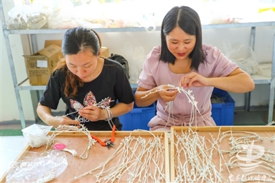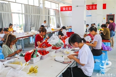今年5月,浙江省义乌赫拉进出口有限公司成功入驻拔山镇。这是一家专门从事手工饰品生产的加工企业,主要产品有新娘头饰和胸花、花环、网带花以及汉服饰品等,已吸引80余名群众实现家门口就业。