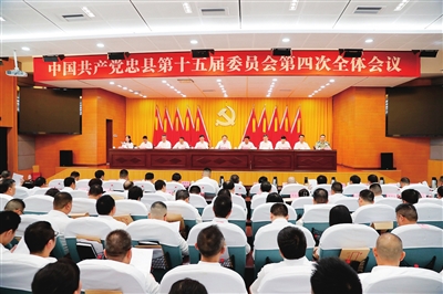 全会审议通过《中共忠县县委关于深入学习贯彻习近平新时代中国特色社会主义思想 加强党建统领 持续修复净化政治生态 全面提高党的领导力组织力 加快建设新时代市域党建新高地忠县范例的意见》《中国共产党忠县第十五届委员会第四次全体会议决议》。