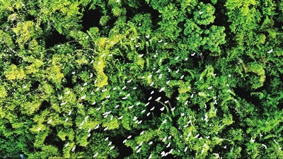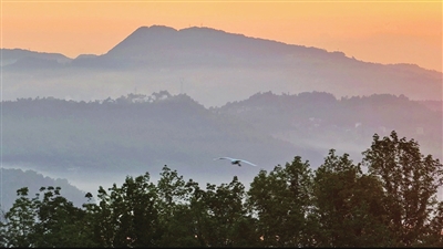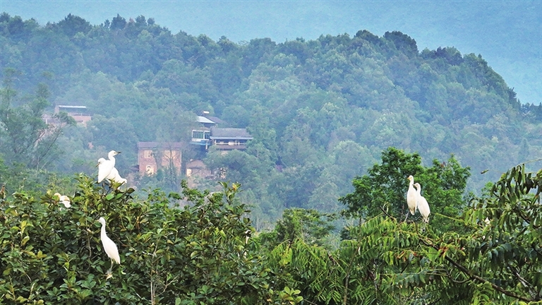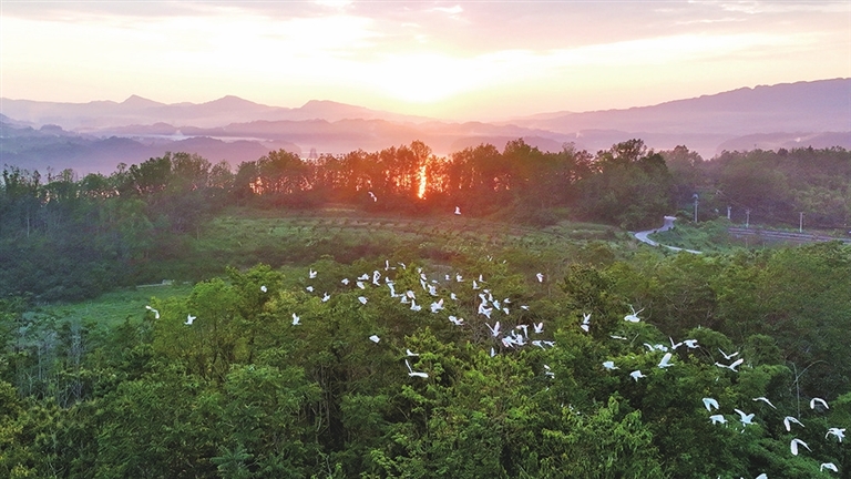 立秋以来,栖息在复兴镇凤凰村一带的鹭鸟陆续向南方迁徙,孵化较晚的一批鹭鸟仍驻留当地。每天傍晚,万千归巢的鹭鸟与绿水青山共同奏响一曲人与自然和谐共生的乐章。