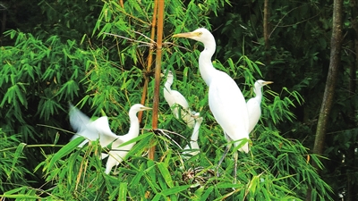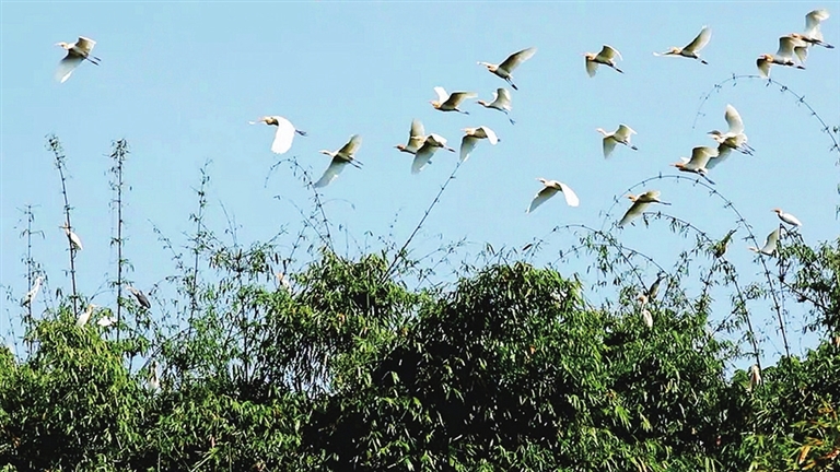 凤凰村与皇华岛隔长江相望。当地丰沛的水资源、繁茂的竹木和大片湿地为鹭鸟栖息繁衍提供了绝佳条件。自2014年第一批鹭鸟在凤凰村“安营扎寨”开始,每年迁徙到此的鹭鸟数量和品种均呈上升趋势。今年,凤凰村一带的鹭鸟已达上万只。