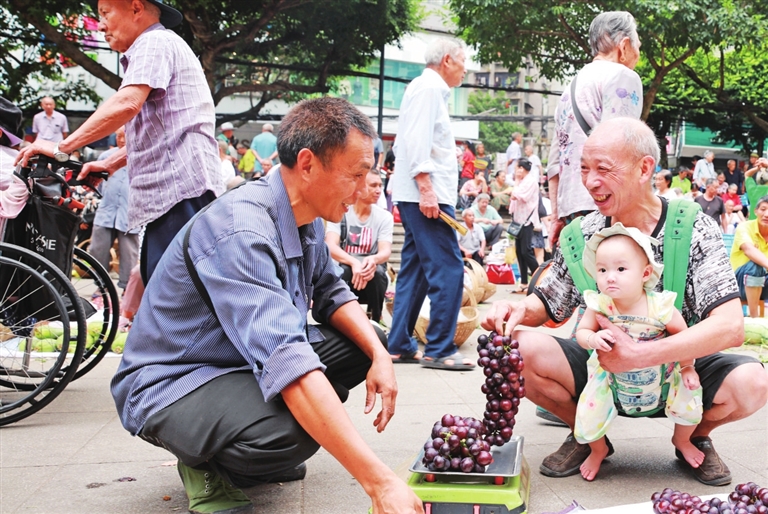 人间烟火气,最抚凡人心。近段时间的每天上午、下午,忠县城区北山广场呈现两种不同景象:上午,整理着新鲜蔬菜的郊区菜农和挑选菜品的城区市民在此交易,构成一幅热闹的“赶场”画面,烟火味十足;下午,广场被环卫工人打扫干净,变成城区市民的休闲娱乐场所,幸福感满满。