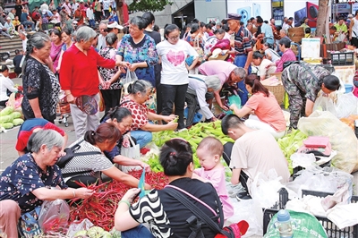 广场变菜市,便民助农“两不误”。现如今,北山广场成为忠州街道最热闹的蔬菜交易地,高峰时段人流量达数千人次。交易结束后,环卫工人迅速把场地打扫干净,方便市民休闲娱乐。