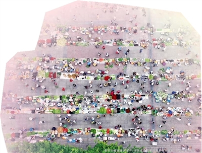 数百个蔬菜摊点横成排、竖成行,整齐划一。市民流连在各个摊位前,选购新鲜蔬菜,交易井然有序……