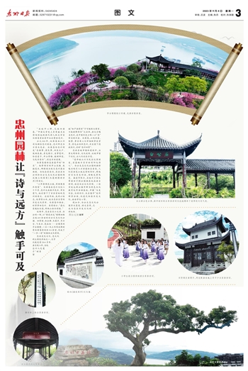 近两年,忠县在长江之滨、白公祠一侧,以“绣花功夫”精雕细琢占地400余亩的白公生态文化公园。四贤阁、白公廊、木莲亭、冬日台、飞来石、花溪谷……公园里的亭台楼榭、一石一木上书写或雕刻有白居易诗词共100余首,形成了“一步一诗”的园林文化景观。