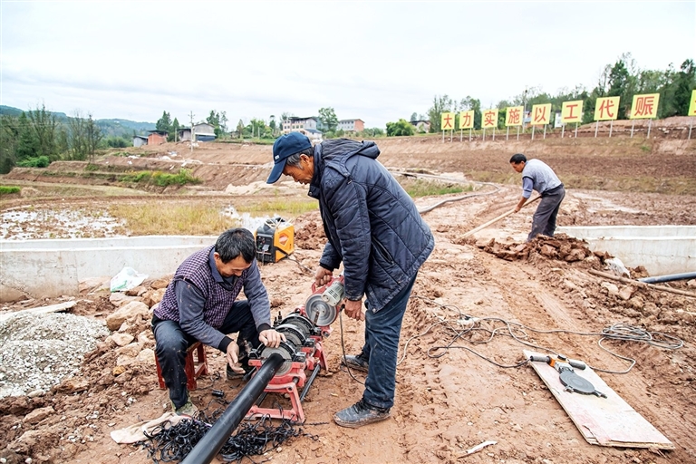 “以工代赈项目的实施,点燃了乡村振兴的新引擎!”汝溪镇相关负责人表示,三河村将借助以工代赈项目的实施,发展中药材300亩、青菜头500亩、水蜜桃150亩、羊肚菌50亩、花椒1200亩,利用特色效益农业“吸粉”,带动乡村旅游业发展,助力三河村实现乡村全面振兴。记者 余鸿 摄