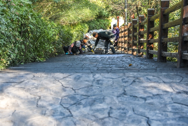 乐天公园于2012年12月竣工,园内建有健身梯道、览景古亭、革命烈士纪念碑和英名墙等。由于投用时间较长,园内部分青石板梯道已破损并长有青苔,存在安全隐患。自今年11月起,县城市管理局组织工人对园内近3000米的健身梯道进行维修,加固塌陷路沿、增强梯道防滑功能等,确保市民休闲健身舒适安全。记者 田华平 摄