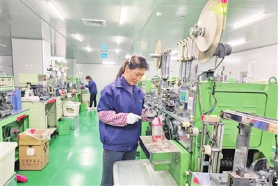 2月22日,位于县工业园区乌杨新区的重庆癸科电子科技有限公司,技术工人在抓紧生产铝电解电容器。