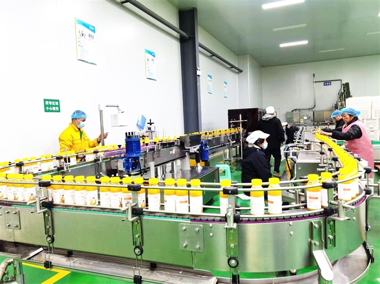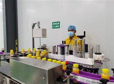 2月22日,重庆鲜果集橙汁有限公司流水线上的产品不断被传递到包装车间,工人们目不转睛地盯着每个环节,严把生产质量关。