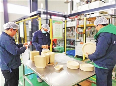 2月26日,重庆瑞竹植物纤维制品有限公司生产车间内,数条生产线开足马力,全力生产竹纤维餐具,工人们有条不紊地打包竹纤维餐具。企业投资3000多万元新建的智能生产线也开始试生产。