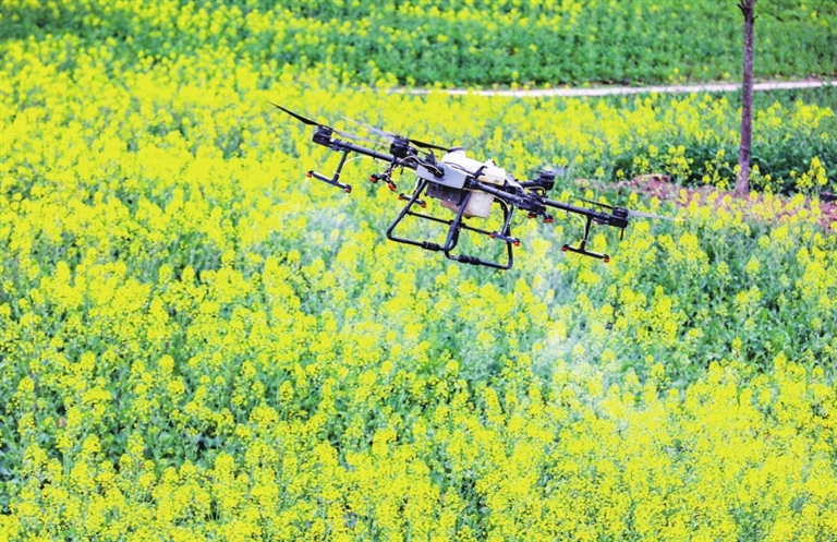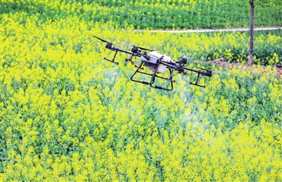 当前正是油菜春管关键时期。用植保无人机喷施化肥,不仅可以促花、壮籽,提高油菜亩产量,还可以提高肥料利用率,减少面源污染。植保无人机喷施作业,比人工喷施效率要高30倍。