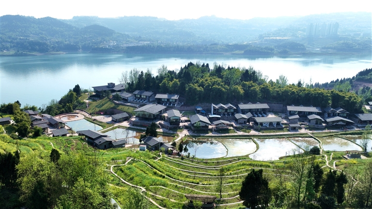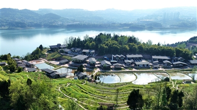 李家院子位于忠县独珠半岛江湾处,该院落既是美丽乡村民居及风貌改造项目,也是乡村振兴和传统村落保护项目,采用巴渝地区传统民居构造形式,对原址建筑进行加固恢复,同步整治林地和梯田,植入小微湿地,种植荷花等特色作物。近段时间,李家院子四周连片的油菜花迎春怒放,与一江碧水和乡村院落共同构成一幅绝美的生态画卷。