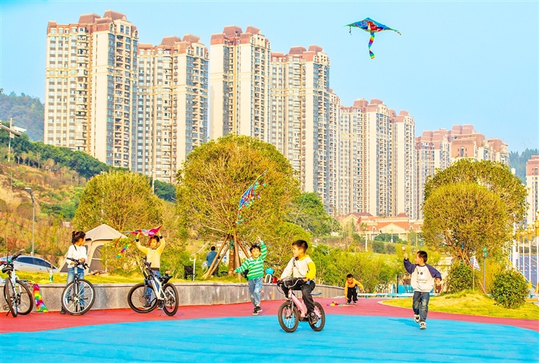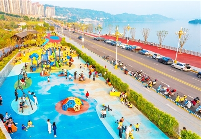 11月2日,忠县城区临江公园内,不少市民带着孩子,在秋阳里享受着快乐的亲子时光。
