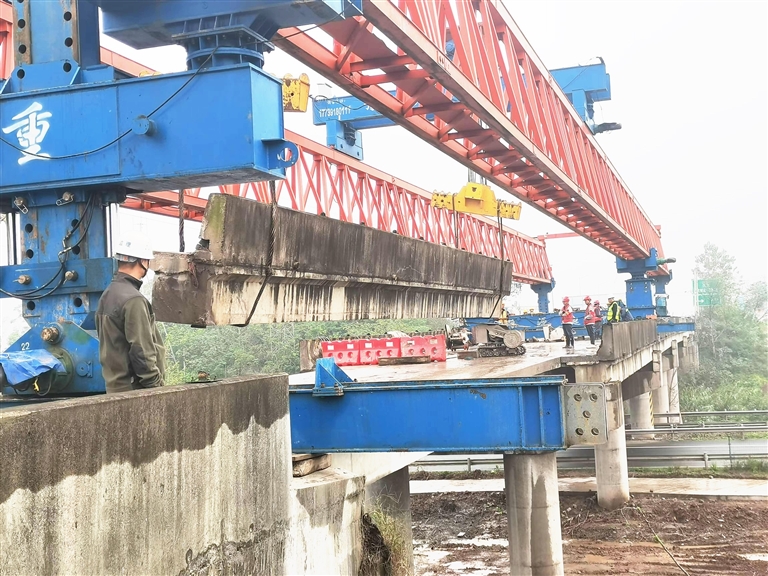 为保障旧桥拆除施工安全并保障G50沪渝高速公路正常通行,县通瑞公司精心组织人力和机械,合理安排施工时间,积极沟通对接相关单位,确保施工安全顺利进行。 记者 伯华 摄