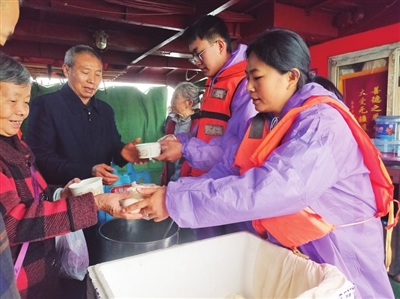 菜农们每天早上四五点就出门赶船,来不及吃早饭。进城就开始卖菜,忙到中午才买饭吃。有的舍不得花钱吃饭,硬撑着下午回家才吃。“天天这样饿怎么行?”秦大益、曹利芳看在眼里、疼在心里。有了直播收入后,他们每天买来早餐,免费发放给乘客,两年多来从未中断。