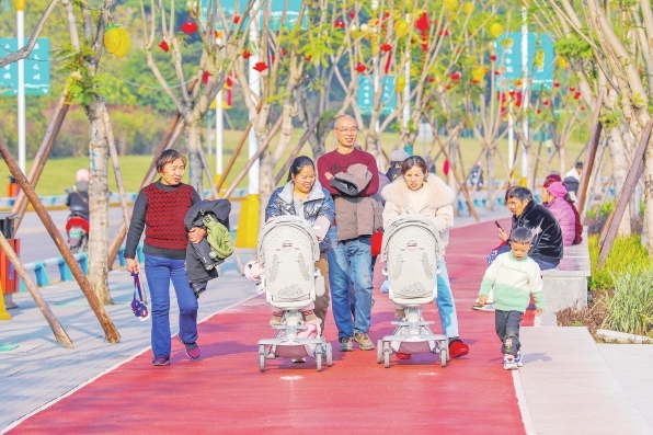 1月5日,忠县临江公园内,市民们沐浴在暖阳下,或休闲或游玩或锻炼,享受着冬日的美好时光。
