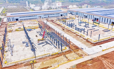3月14日,重庆(忠县)现代农业柑橘产业园低温冷库钢结构厂房建设现场,工人在紧张施工。