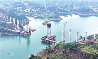 㽏井河双线特大桥全长652.8米,共14跨。该桥位于忠县规划的皇华岛国家湿地公园内,距长江口约3公里,是渝万高铁全线8座重点桥梁之一。工程建设中,中铁十八局渝万高铁站前2标项目部严格按照渝万铁路公司“高标准、高质量,倾力建造西南艰险山区生态铁路工程”的要求,周密组织、科学调度,顺利完成桥梁下部施工所有工序施工。 记者 赵军 摄
