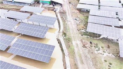 近日,记者在拔山镇八德村农光互补产业区看到,遍布山野的光伏板错落有致,光伏板下,村集体经济组织养殖的跑山鸡和山羊正在觅食。