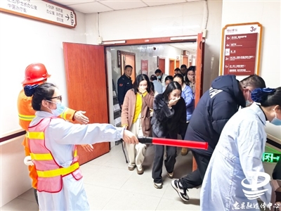 演练模拟骨科病房出现火情,应急小组5分钟内完成对50余名“患者”进行疏散及火情控制,整个演练过程井然有序。