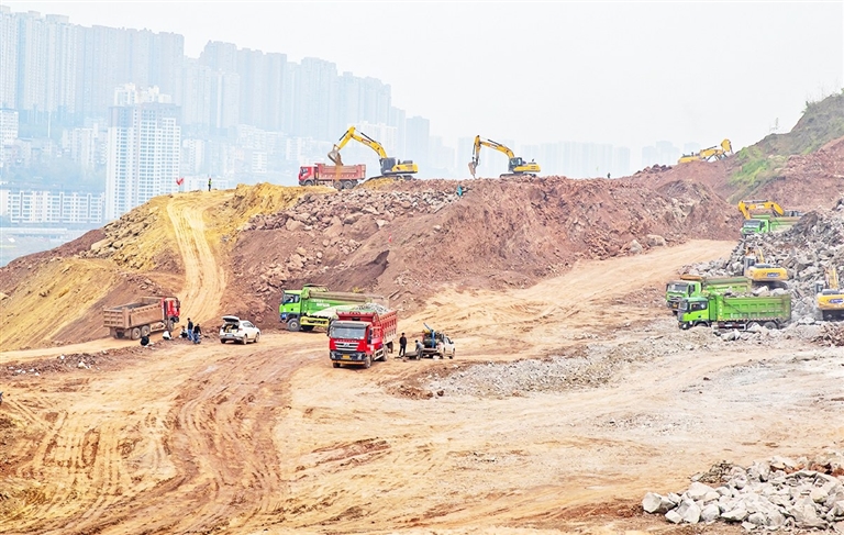 3月24日,渝万高铁忠县站综合客运枢纽项目地基建设现场,一派繁忙施工景象。