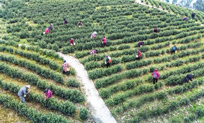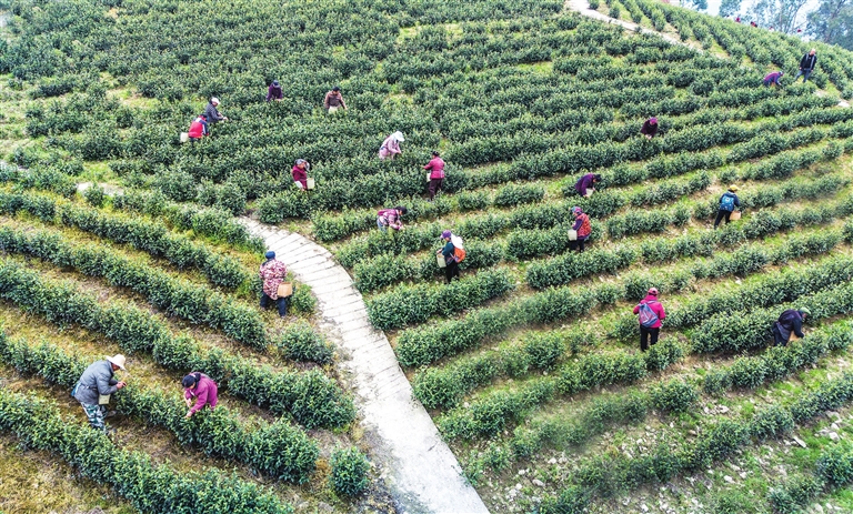 近段时间,新生街道钟坝村茶叶基地,茶农们抢抓“明前茶”首轮采摘时段采茶,以抢占市场先机。