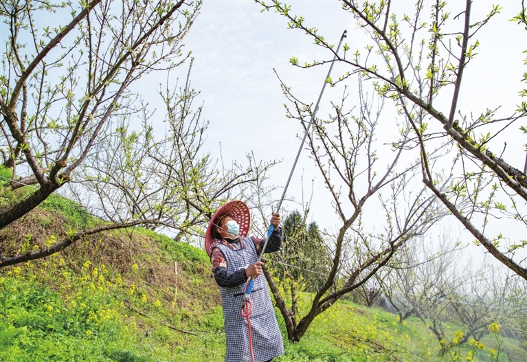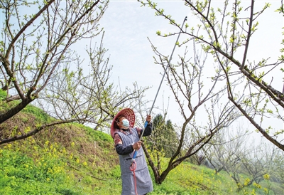 近日,位于双桂镇石宝村的忠县静源农业发展有限公司蜂糖李种植基地里,工人在为果树喷施营养液。
