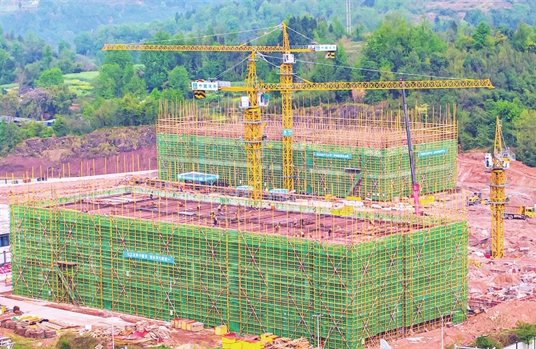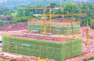 近日,县工业园区乌杨组团磨子产业园5万平方米标准厂房项目建设现场,数十名工人在紧张施工。