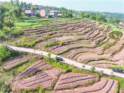 华兴村五组黄泥冲,曾是一片杂草丛生的撂荒田,如今成了村集体产业基地。眼下,田间垄土成行、黑膜覆盖,村民按照50厘米株距,将一株株嫩绿的西瓜苗移栽到土里。