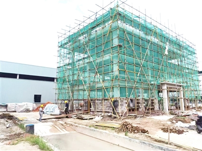 该项目由浙江永坤电气有限公司投资8000万元,将建成高低压成套开关设备生产线4条,形成年产500万套高低压成套开关设备的生产能力。目前,厂房建设已完成工程量70%,预计在今年10月底全部完工。 记者 伯华 摄