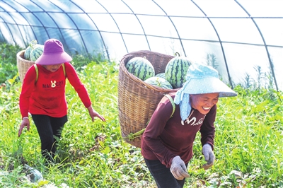 “大棚种植可以调节温度、湿度、光照,避免暴雨、高温、低温等恶劣天气,不仅能提高西瓜产量和品质,还能控制西瓜生长周期,让上市时间更灵活。”