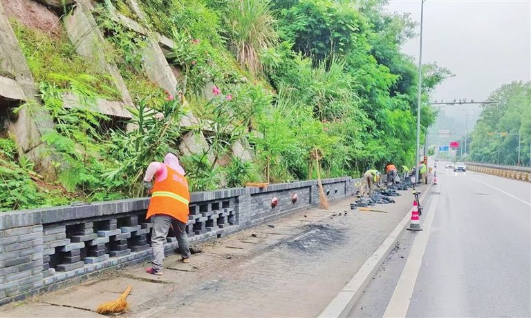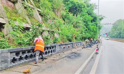 在忠县长江大桥南侧至古剑台隧道段,县交通运输委对沿线两万平方米区域进行综合提升,修缮文化墙、清理杂草、梳理植物层次,使原本杂乱的边坡焕然一新,成为兼具文化韵味和生态美感的城市景观带。在人民路内侧(二三公里段),县通达公司对6000平方米边坡进行全面整治,清理杂草、枯枝和垃圾,加固破损护坡,并在裸露区域补植琴丝竹、麦冬等耐旱植物两万余株。在玉溪锦城原幼儿园地块,县通达公司对11850平方米区域进行绿化改造,清理违规菜地,并因地制宜栽植红梅、香樟树等植物。此外,忠州街道、白公街道、乌杨街道、新生街道、复兴镇等辖区也同步推进边坡复绿工作,通过清理杂草、垃圾和栽植三角梅、爬山虎等植物,进一步提升城市绿化覆盖率,改善人居环境。