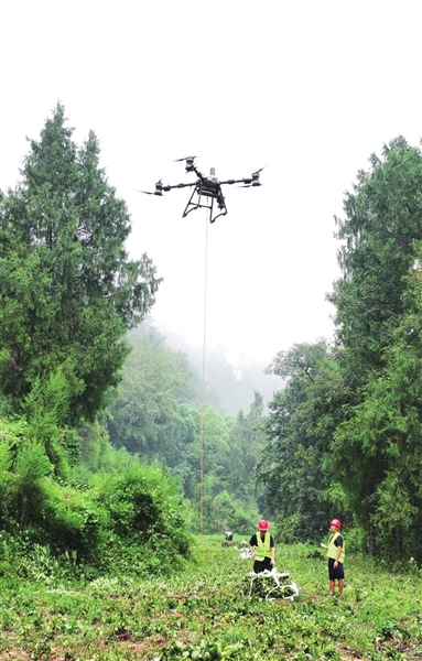 以往靠人力挑运两三里山路的光景早已改变。范远华指着空中穿梭的无人机笑道:“这可是会飞的‘搬运工’!”