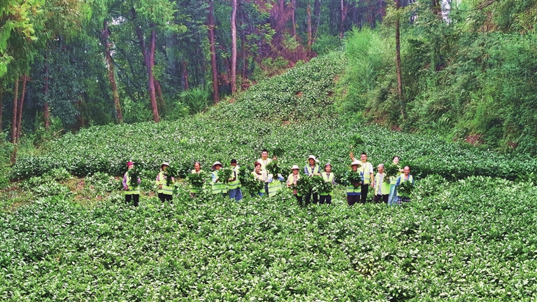 两年前,中国林业集团重庆林投忠州公司在竹山村建设南板蓝根种植基地。经过持续发展,这片“试验田”扩大至其他乡镇且超千亩,年产值达280万元。昔日的“试验田”已结出丰硕成果。