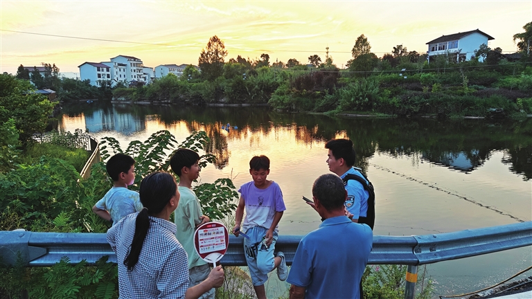 暑假期间,石黄镇平安办工作人员联合辖区派出所民警、村(社区)干部,针对山坪塘等水域,开展“一日三巡”活动,向群众宣讲防溺水安全知识,并将防溺水安全告知书发放到每个家庭。